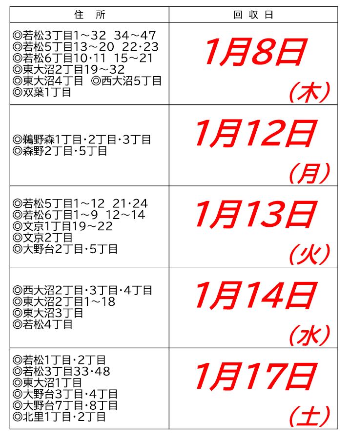 • お住いのご住所ごとに、回収日が異なりますのでご確認のうえ